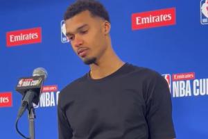 赛后发布会,文班接受采访,第一个问题他眼眶泛红全是泪水,用哭腔说着:“对不起,我今天失去了一位亲近的人。”