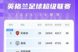 英超完整积分榜如图所示: