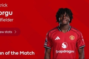 体育资讯1月26日讯 英超官方宣布,多尔古当选阿森纳2-3曼联的全场最佳球员。