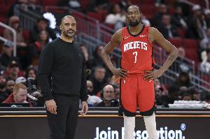 赛后乌度卡接受采访,记者提到杜兰特第三节没获得多少触球机会,对此乌度卡说:“我们必须加强移动,不能停滞和站着不动。当他们采取阻绝防守时,我们要进行更多的无球战术。但如果我们跑战术,就必须设置掩护,制造一点空间,同时凯文(杜兰特)也必须移动起来。所以这是双向的。减少站定,增加球员的移动节奏。我们必须为接球的球员设置掩护。”