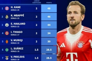 体育资讯2月14日讯 德转盘点了截至目前欧洲金靴奖积分情况,其中凯恩、姆巴佩与哈兰德排名前三且差距很小,具体如下: