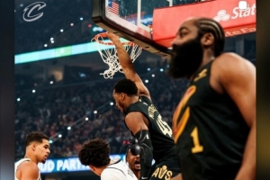 体育资讯2月22日讯 在前天骑士大胜篮网的比赛中,哈登为米切尔送出了一记不可思议的空接。